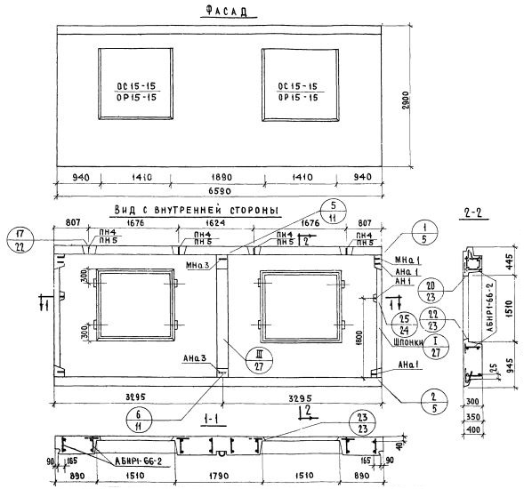 НР1-66.29.4-2   Наружная стеновая панель рядовая по Серии 1.132-1.